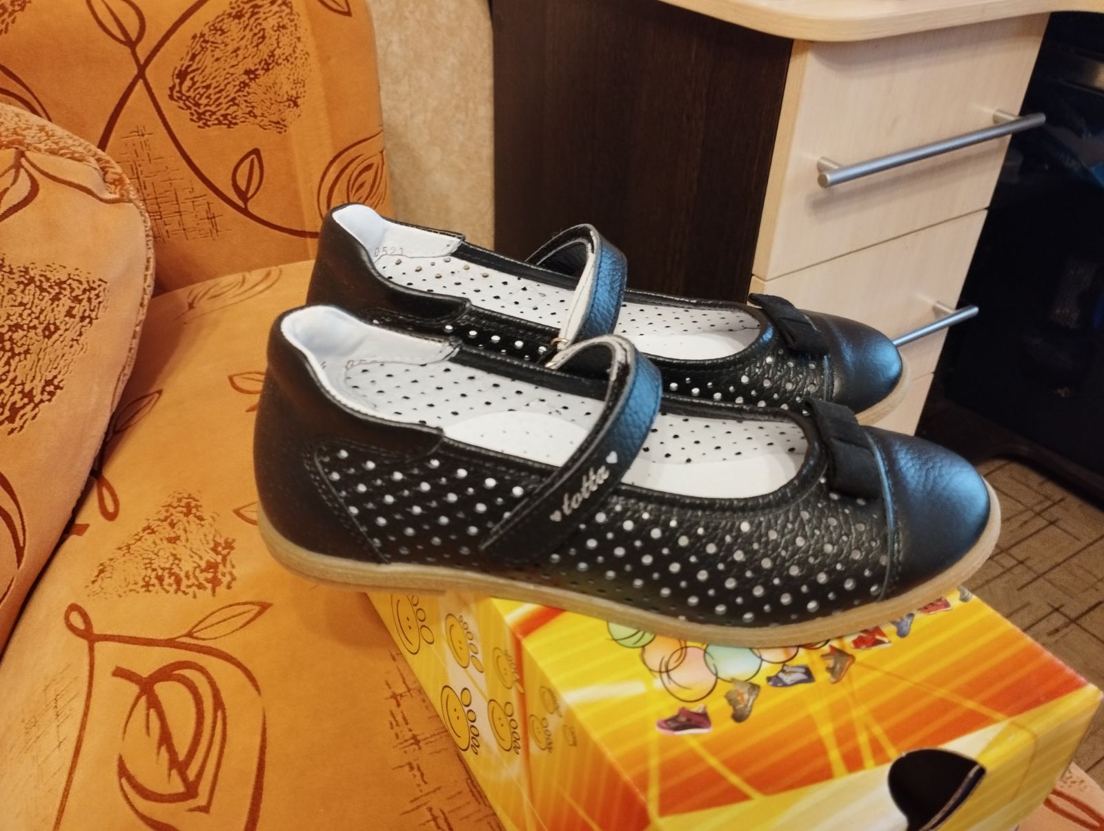 Классные школьные туфли Тотта, полностью натуральные, по стельке 22 см, не на широкую ногу.